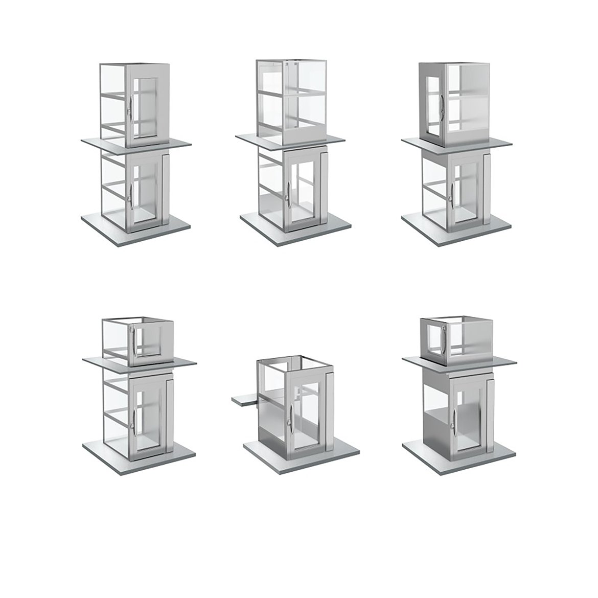 Doors can be placed on the same side of the shaft, on opposite sides or at an 90° angle. For home lifts, we recommend a door clear opening width of 800 mm and for public lifts, 900 mm.